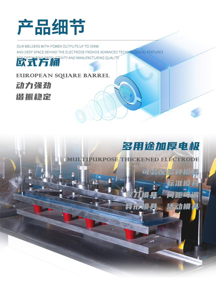 自動(dòng)行走式高周波帆布熔接機(jī)的用途: ※通過高周波的原理,用來做高周波PVC沼氣池熔接、PVC蓄水池熔接、PVC兒童游泳池熔接,也可以用來做高周波汽車篷布帆 布接駁、高周波帳篷布熔接、高周波電影幕布熔接、高周波膜結(jié)構(gòu)拼接、戶外膜結(jié)構(gòu)焊接、膜結(jié)構(gòu)熔接、高頻戶外遮陽布熔接、 高頻廣告噴繪布焊接、高頻PVC布熔接或含有PVC成分的任何材質(zhì)的軟性塑膠塑料的高周波熔接或拼接。通過高周波的作用后,被 高頻熔接的材料,表面光滑平整且美觀牢固。 自動(dòng)行走式高周波帆布熔接機(jī)的特點(diǎn): ※自動(dòng)行走式高周波帆布熔接機(jī),采用智能化PLC人機(jī)界面操作系統(tǒng),步進(jìn)或伺服馬達(dá)驅(qū)動(dòng)。自動(dòng)行走,位置精準(zhǔn),無需搬動(dòng)材料 和機(jī)器。一條接縫一次性完成,接縫整齊,無皺紋,無刀印。每分鐘可達(dá)5-10m的焊接速度??筛鶕?jù)用戶需要,選擇不同高周波功率 大小的機(jī)器,每次焊接材料的長(zhǎng)度及寬度,均可以通過改變高周波模具的尺寸長(zhǎng)短寬度,實(shí)現(xiàn)膜結(jié)構(gòu)或帆布的自動(dòng)熔接需要。機(jī)器的 內(nèi)側(cè)設(shè)有相應(yīng)跨度的放料槽,放料槽的跨度和深度可根據(jù)焊接的產(chǎn)品大小選擇。以滿足不同大小面積的帆布熔接及接駁。膜結(jié)構(gòu)帆布熔 接機(jī)的鐳射掃描定位系統(tǒng)為可選配置,方便每次焊接時(shí)精準(zhǔn)定位。 ※自動(dòng)行走式高周波帆布熔接機(jī)的高頻振蕩系統(tǒng)為歐式方形同軸結(jié)構(gòu),高周波輸出的力量穩(wěn)定強(qiáng)大。高周波熔接機(jī)內(nèi)設(shè)有高周波 NL5557火花保護(hù)系統(tǒng),可防止損壞高頻熔接模具。高周波膜結(jié)構(gòu)熔接機(jī)的焊接時(shí)間,可根據(jù)材質(zhì)厚薄不同自由設(shè)定,高周波的功率輸 出大小精密可調(diào)。 ※每次熔接牢固穩(wěn)定,材料厚薄均可滿足。機(jī)器料糟深寬,方便大面積連續(xù)接駁。機(jī)器可連續(xù)壓線接熔,接熔長(zhǎng)度可以自由定制。 歐洲制式方形高頻震蕩箱,出力更大,更加穩(wěn)定。機(jī)器為C型結(jié)構(gòu),機(jī)身至焊頭跨度長(zhǎng)達(dá)750mm??蛇B續(xù)壓線接熔,也可以選擇同 時(shí)雙線熔接。 ※自動(dòng)行走式高周波帆布熔接機(jī)又稱為高周波汽車篷布帆布接駁機(jī)、高周波帳篷布熔接機(jī)、高周波電影幕布熔接機(jī)、高周波膜結(jié)構(gòu) 拼接機(jī)、戶外膜結(jié)構(gòu)高周波焊接機(jī)、膜結(jié)構(gòu)高周波熔接機(jī)、高頻戶外遮陽布熔接機(jī)、高頻廣告噴繪布焊接機(jī)、高頻PVC布熔接機(jī)、高 周波塑膠塑料熔接機(jī)、高周波熔接拼接機(jī)、高周波汽車篷布焊接機(jī)、高周波戶外帳篷制作機(jī)、遮陽膜結(jié)構(gòu)高周波焊接機(jī)、廣告噴繪布 高周波接駁機(jī)、高周波熱汽球制造機(jī)、電影幕布高周波縫合機(jī)高周波帆布熔接機(jī),高周波膜結(jié)構(gòu)熔接機(jī),高周波帆布機(jī),汽車帆布熔接機(jī)。 高周波膜結(jié)構(gòu)帆布熔接機(jī)的技術(shù)規(guī)格: 機(jī) 型: HR-8KWA HR-10KWA HR-12KWA HR-15KWA HR-25KWA 高 周 功 率: 8000W 10000W 12000W 15000W 25000W電 源 電 壓: 380V 50/60HZ 高 周 頻 率: 27.12MHZ 13.56 MHZ 輸 入 功 率: 15KVA 18KVA 20KVA 25KVA 35KVA 整 流 器: 矽二極體 振 蕩 管: 7T69RB E3069 E3130 8T85RB 8T25RA 最 大 壓 力: 500kg 600kg 800kg 1000kg 1500kg 電 極 間 隔: 150 mm 活 動(dòng) 行 程: 150 mm 上模夾 尺寸:50*50*800mm 50*50*800mm 50*50*900mm 60*60*900mm 50*50*1000mm 熔 接 時(shí) 間: 0---10s <機(jī)器相關(guān)所有尺寸,均可根據(jù)用戶要求定制。因改良需要,規(guī)格變動(dòng)不另通知> |