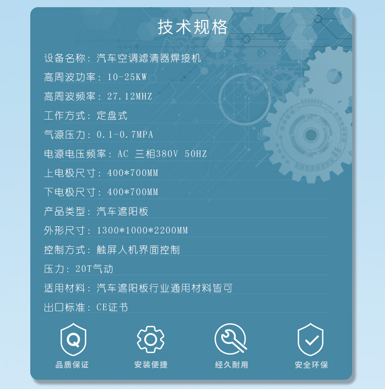 三,高周波汽車(chē)遮陽(yáng)板熔接機(jī)的技術(shù)規(guī)格: