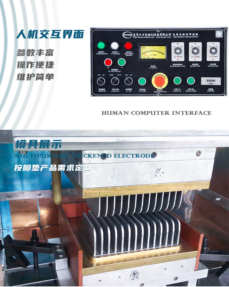 時切斷,基本上是同時完成。適用于大面積的高周波熔接裁斷,坐墊成型,大型腳墊成型,APET,PETG,GAG等環(huán)保材料的高周波柔軟線