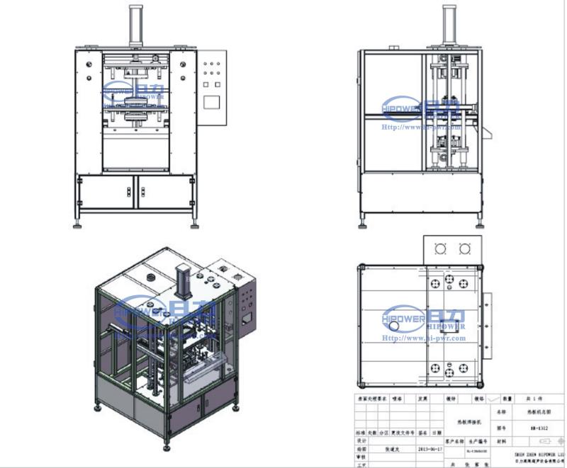 ※熱板機(jī)整機(jī)結(jié)構(gòu)特點(diǎn):采用國標(biāo)優(yōu)質(zhì)矩形鐵管焊接而成,表面再經(jīng)噴塑工藝處理。門板由數(shù)控折彎機(jī)及沖床加工成型后,表面再經(jīng)噴塑工藝處理。熱板移動(dòng)機(jī)構(gòu)由氣缸、滑塊導(dǎo)軌、熱板等部件組成。氣缸作為動(dòng)力源,帶動(dòng)熱板機(jī)構(gòu)沿兩條滑塊導(dǎo)軌前后作直線運(yùn)動(dòng)。熱板焊接機(jī)部件:由熱板模、加熱板組成,熱板模與加熱板通過快速定位緊固機(jī)構(gòu),與熱板移動(dòng)機(jī)構(gòu)連接。熱板機(jī)結(jié)構(gòu)的特點(diǎn)是:熱板在運(yùn)動(dòng)時(shí),平穩(wěn)且運(yùn)動(dòng)間隙小。熱板機(jī)構(gòu)上,帶加熱板及上、下熱模,以及加熱板固定熱模的快速聯(lián)接機(jī)構(gòu),能夠有效快速更換不同產(chǎn)品,優(yōu)化了其使用范圍、提高了生產(chǎn)效率。熱板機(jī)上、下模板通過4根限位導(dǎo)桿與熱板焊接機(jī)聯(lián)接在一起,可以精確調(diào)整焊接深度,共同組成一個(gè)設(shè)備的主要運(yùn)動(dòng)部件。