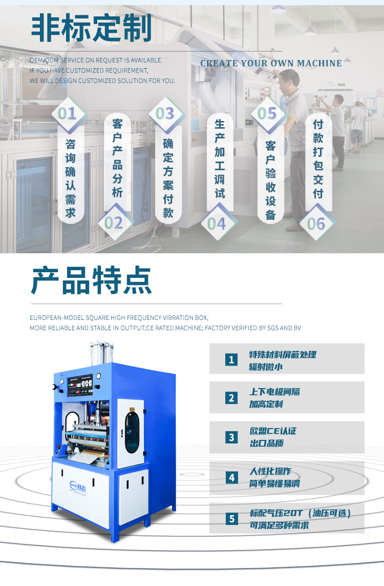 2、高周波汽車遮陽板熔接機(jī)操作方便:操作非常簡便、快捷易于上手。機(jī)器生產(chǎn)過程中安全平穩(wěn)。機(jī)器配件采
