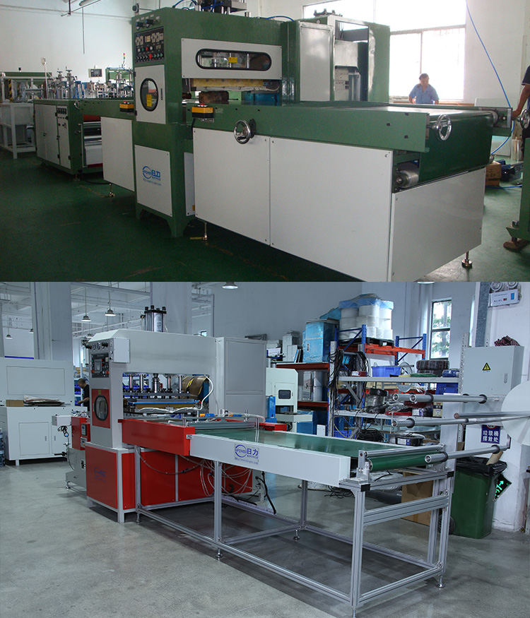 環(huán)保料高周波柔軟線膠盒機的用途: 最適用于APET、PETG、GAG等環(huán)保料柔軟線膠盒制作.也可用于需要高周波熔接同時又必須同步裁斷的產(chǎn)品加工.工作原理是利用高周波先熔接,再通過機器配有的壓力裝置同時切斷,基本上是同時完成.故稱高周波同步熔斷機,也稱為高周波熔斷機、熔斷機、高周波同步裁斷機、高周波裁斷機。也可用于APET、PETG、GAG環(huán)保材質(zhì)的雙面吸塑泡殼的封口包裝、吸塑紙卡包裝、牙刷封口包裝,以EVA布類皮革、真皮、OPP、PU材質(zhì)的熔接并熔斷。一切需熔接且同時裁切之材料,均可加工。 環(huán)保料高周波柔軟線膠盒機的特點: ■ 純油壓式壓力,出力更穩(wěn)定,左右雙向自動滑臺,往返連續(xù)推送模具,定位精準±20um。 ■ 裁斷壓力1-30噸可調(diào),出力穩(wěn)定可靠,結(jié)構(gòu)剛強。 ■ 采用高靈敏度PL5557火花防止器,有效防止損壞模具. ■ 加壓方式:純油壓式兩段壓力,無需氣源。 技術(shù)規(guī)格; 機 型 HR-15KW-30T HR-25KWP-40T 高周波 功率 15000W 25000W 電 源 電 壓 380V 50/60Hz 頻 率 13.56MHz 輸 入 功 率 25KVA 35KVA 整 流 器 SILICON DIODE 矽二極體 振 蕩 器 7T85RB 8T25RA 最 大 壓 力 30T 40T 電 極 間 隔 150MM 焊頭活動尺寸 150MM 上電極 尺寸 700*800mm 800*900mm 下電極 尺寸 700*800mm 800*900mm 溫 度 范 圍 30-200℃可調(diào)Adjustable 熔 接 時 間 0-10S可調(diào)Adjustable 產(chǎn) 能 ㄑ35000times/8H <機器相關(guān)所有尺寸,均可根據(jù)用戶要求定制。因改良需要,規(guī)格變動不另通知> |