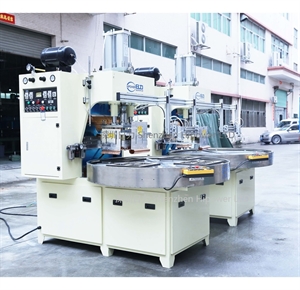 主要用于需要高周波熔接同時又必須同步裁斷的產品加工,高周波機的工作原理是利用高周波先熔接再通過機器配有的壓力裝置同時切斷。因為是同時完成,所以稱為高周波同步熔斷機。也稱為高周波熔斷機、熔斷機、高周波同步裁斷機、高周波裁斷機。主要適用于APET、PETG、GAG環(huán)保材質的雙面吸塑泡殼的封口包裝、吸塑紙卡包裝、牙刷封口包裝,以EVA布類皮革、真皮、OPP、PU材質的熔接及熔斷。全自動轉盤式高周波熔斷機的特點: