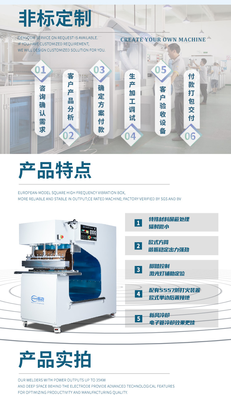 料的高周波熔接或拼接。通過高周波的作用后,被高頻熔接的材料,表面光滑平整且美觀牢固※可根據(jù)用戶需要,選擇不同