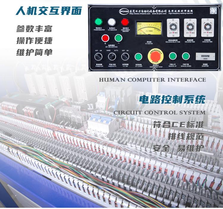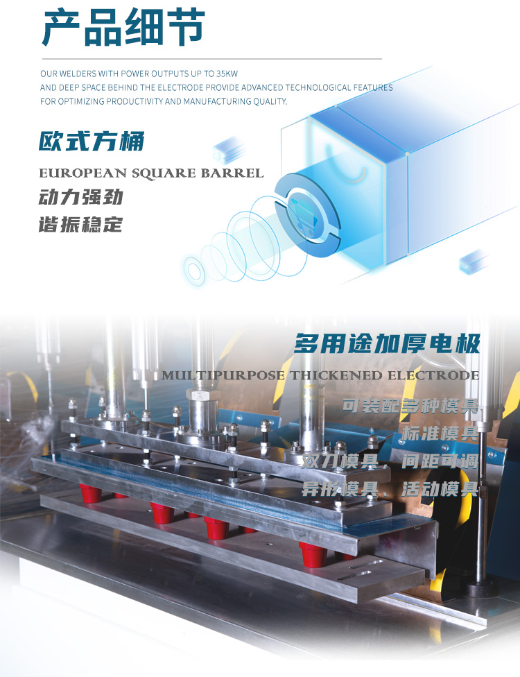 ※高頻振蕩系統(tǒng)為歐式方形同軸結(jié)構(gòu),高周波輸出的力量穩(wěn)定強(qiáng)大。高周波熔接