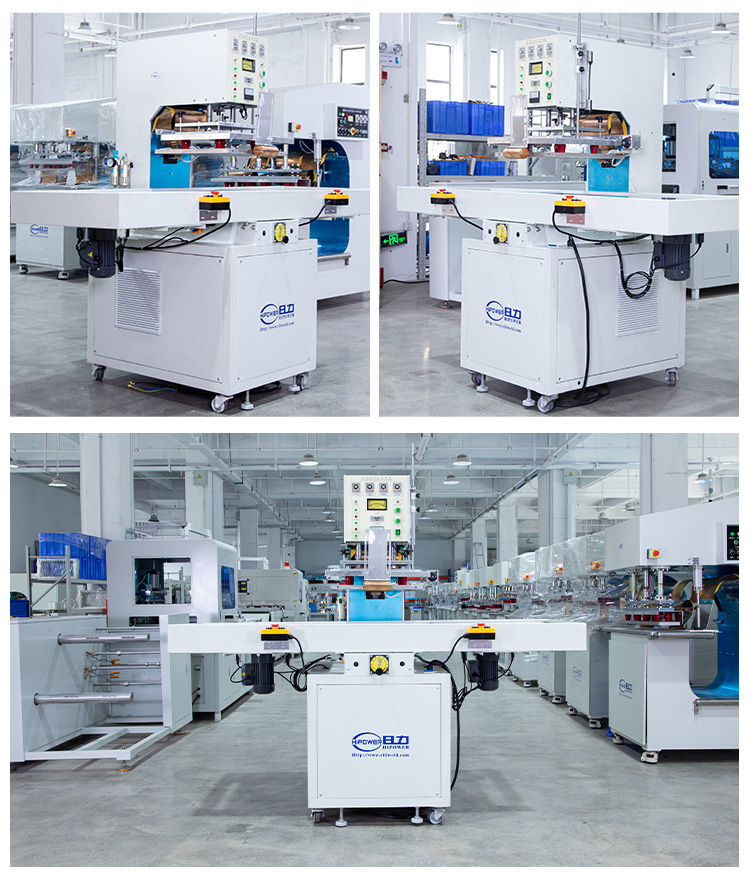 文具用品包裝、電子產(chǎn)品包裝、MP3、MP4、MP5吸塑包裝、牙刷包裝、牙線包裝、玩具包裝、禮品包裝、五金工具包裝、U盤包裝等吸塑紙卡包裝,也可用于PVC柔軟線膠盒成型,塑料熔接、PVC加工等用途。 ★單頭轉(zhuǎn)盤式高周波塑料熔接機是利用高頻熱合的原理,通過高周波模具加熱工件,到達塑料同塑料的熔接、塑膠同紙卡,或紙卡同紙卡的塑接,被熔接的紙卡通常在印刷時表面被涂上一層PVC或APET、PETG的膠水,在高周波的作用下熔為一體。高周波塑料熔接機,常用于雙面吸塑泡殼封口包裝,吸塑吊卡封口包裝,雙面紙卡夾吸塑罩熱合封口包裝,也稱為泡殼包裝,高頻熱合包裝,吸塑包裝。所以高周波吸塑包裝機,也是包裝機械,印刷包裝機械內(nèi)常用的一種包裝設(shè)備。因為包裝封口后里面的產(chǎn)口透明易見,故而利用高周波包裝深受廠商及消費者的喜愛。機器也可用于一些塑料熔接、PVC熔接、塑膠熔接、真皮壓印等用途。