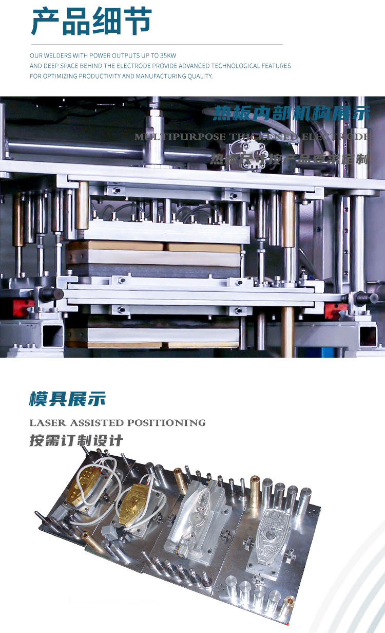 熔接機(jī)。主要主要適合焊接產(chǎn)品面積大、不規(guī)范的塑料產(chǎn)品,如:汽車手套箱焊接,汽車保險(xiǎn)杠焊接,汽車儀表臺(tái)焊接,汽車水箱焊接,汽車尾燈熱板焊接,