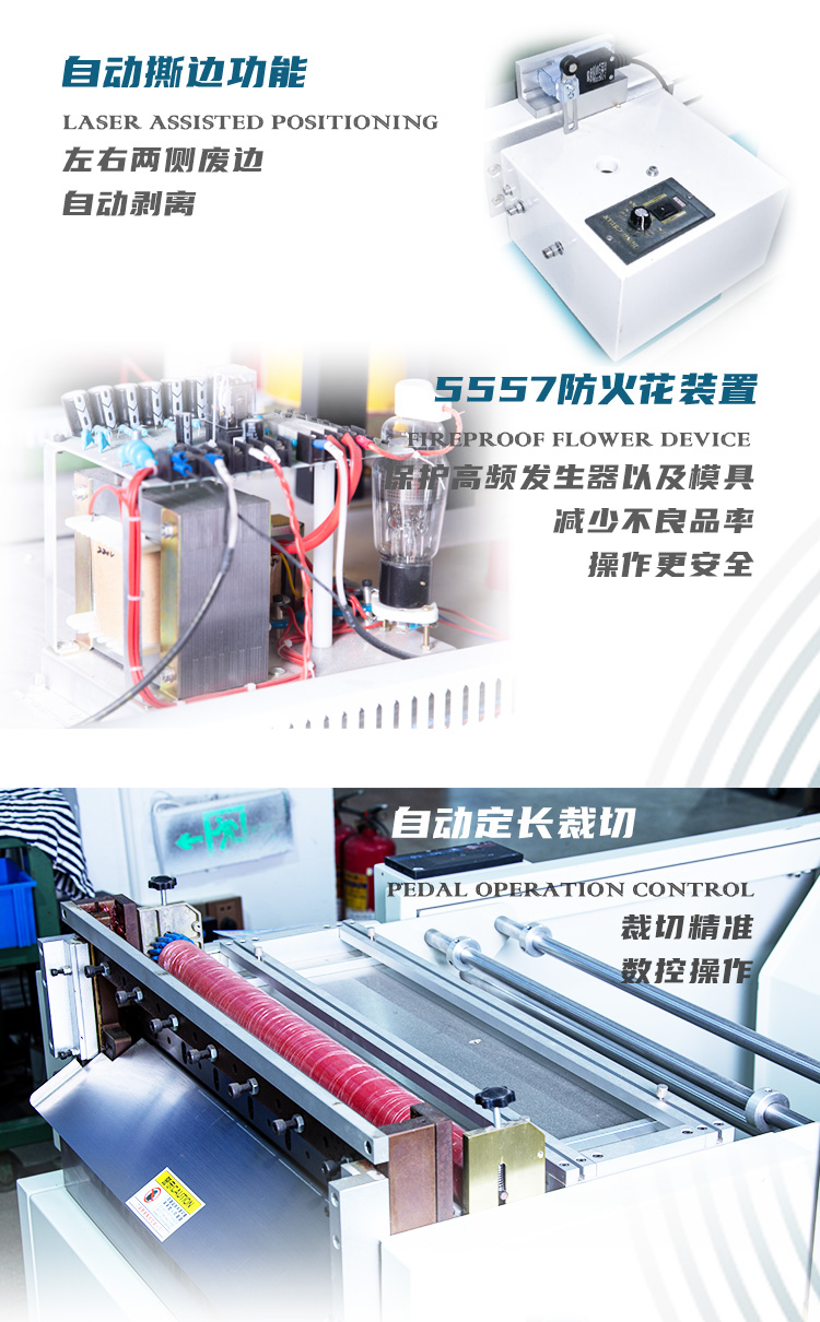產(chǎn)量更好。連續(xù)送料熔接,定位準(zhǔn)。也適用用大面積產(chǎn)品的加工,熔接,如PVC水床,漂流筏,兒童泳池等。