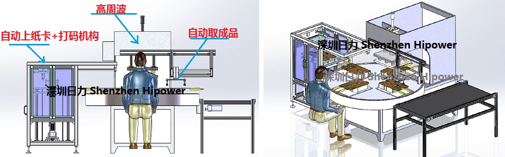 本設(shè)備是由深圳日力公司自主開發(fā)研制的一套自動高周波吸塑包裝的熔接作業(yè)設(shè)備,本設(shè)備工序流程如下: