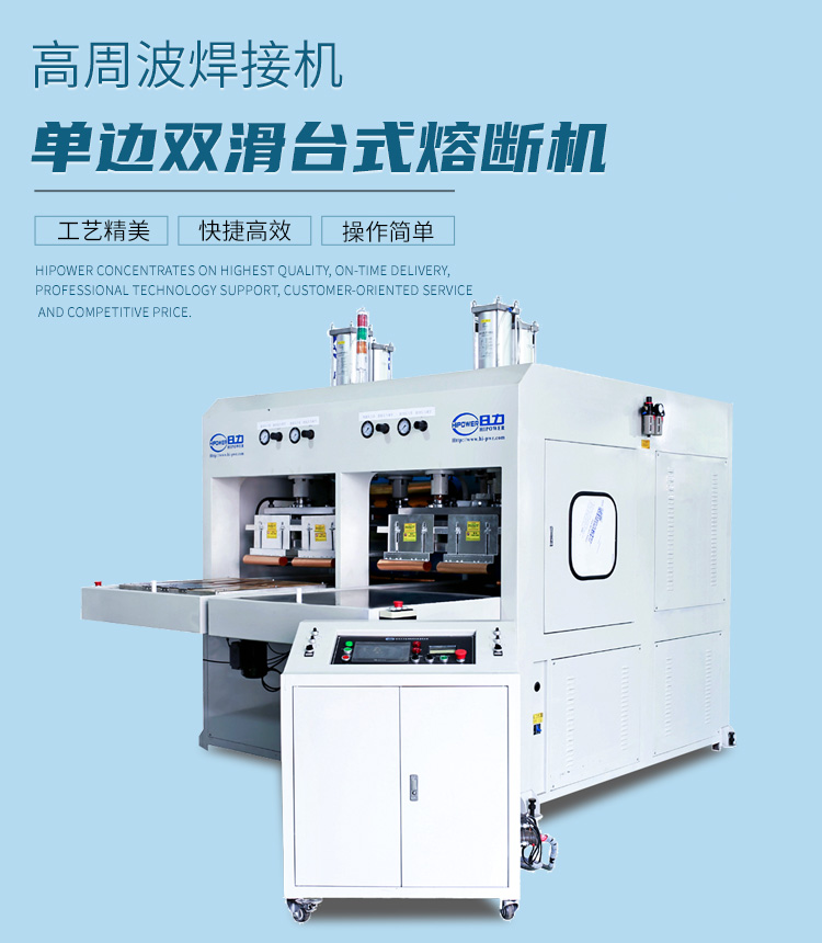 ★高周波熔接機,通常也稱為高周波吸塑包裝機、高周波塑料熔接機、高頻熱合機、高頻封口機、吸塑包裝機、高周波封口包裝機、熱合封口包裝、泡殼包裝機、高頻熱合包裝機、吸塑包裝機、高周波封口機、高頻包裝機、高周波包裝機、包裝機械等等。單頭推盤式高周波熔接機和單頭轉(zhuǎn)盤式高周波熔接機有手動和自動兩種可供選擇,自動推盤式或自動轉(zhuǎn)盤式的高周波機效率更高,產(chǎn)量更好。自動滑臺式高周波熔接機為雙向自動滑臺,往返式連續(xù)送料熔接,定位準(zhǔn)。也適用用大面積產(chǎn)品的加工,熔接,如PVC水床,漂流筏,兒童泳池等。